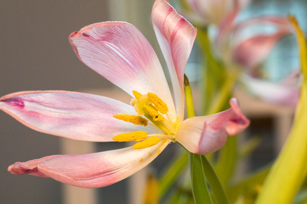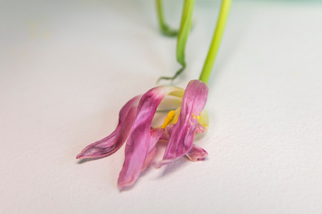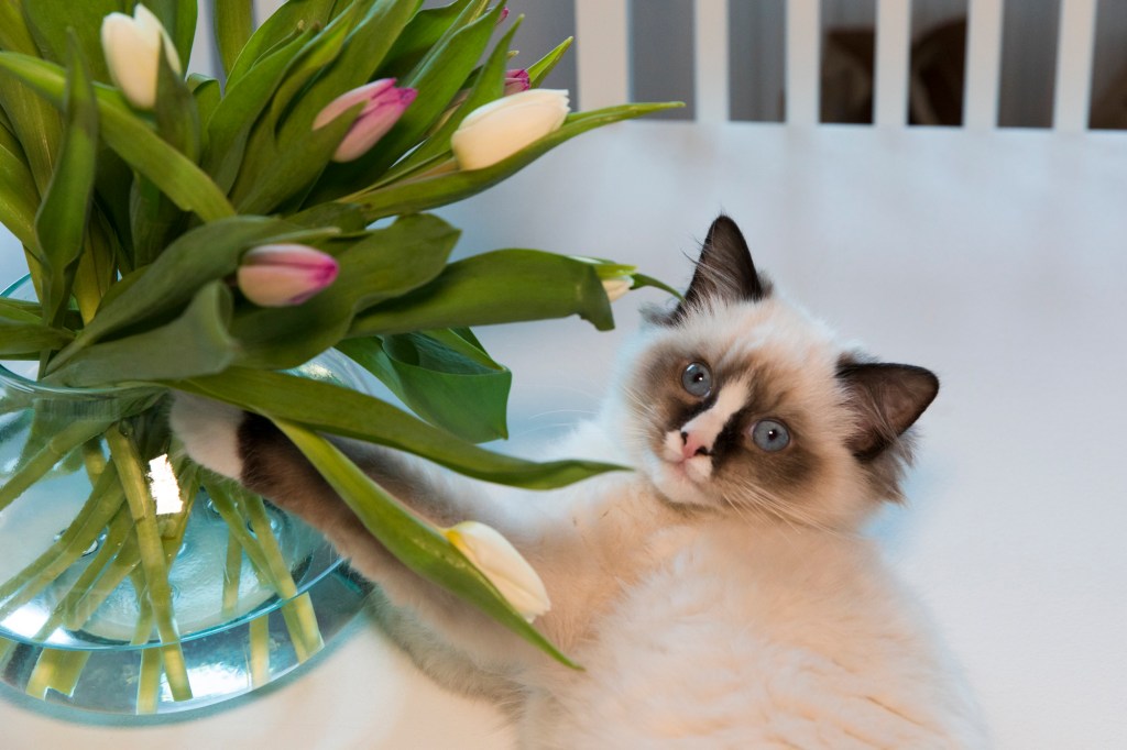 Så här ser tulpanerna ut efter att Ison har dödat dom. Jag älskar tulpaner och vill gärna ha fina buketter. Tyvärr älskar Ison också tulpaner men kanske inte av samma anledning som jag. Han kastar sig över och biter i dom. Jag tar ner honom och han hoppar upp igen.