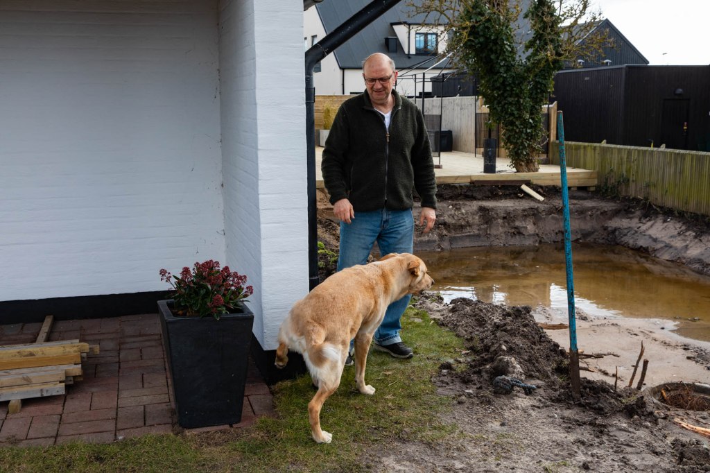 När vi skulle fota poolbygget så tyckte Diesel att det passade bra att kissa på hörnan på huset 🙂