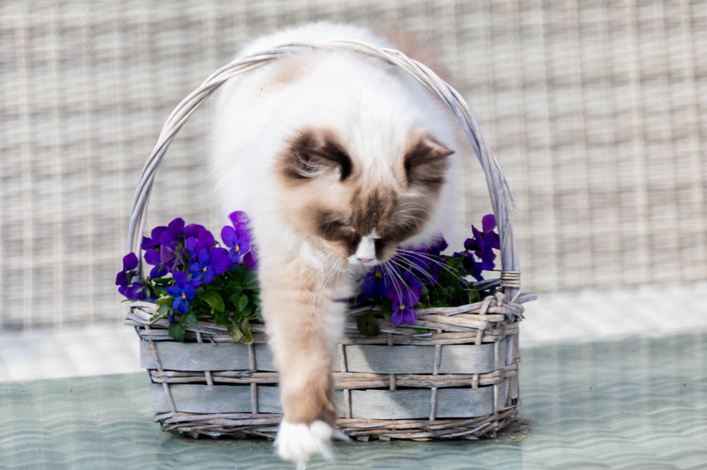 Man kan ju inte precis säga att Ison är försiktig med mina blommor. Istället för att gå runt om korgen med penséer måste han gå rakt igenom istället.