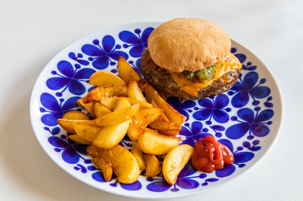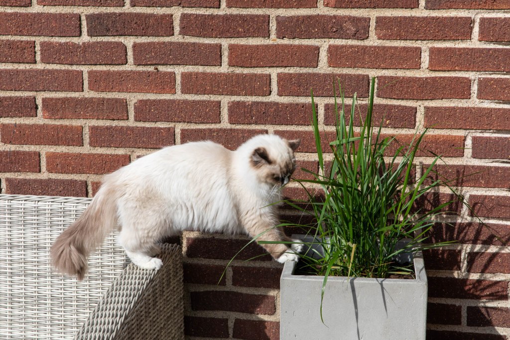 En mellanlandning innan Ison hoppar upp i krukan och käkar på gräset