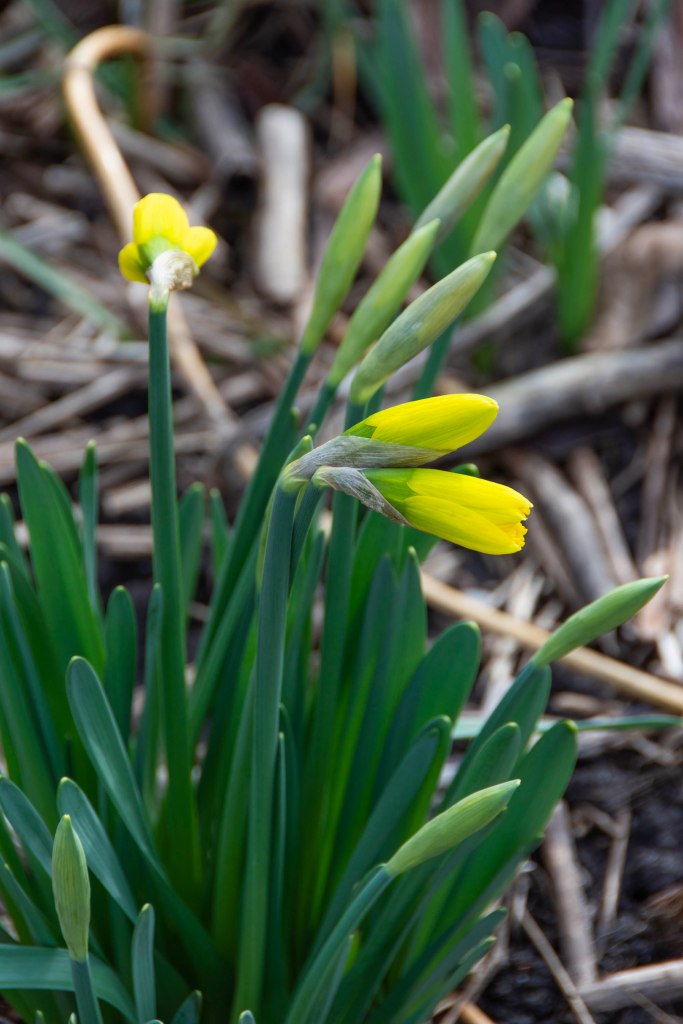 Jag hittade idag den 20 februari en påsklilja som blommade med hjälp av solens kraft. Det är den första jag har sett i år. Hur glad blir man inte?