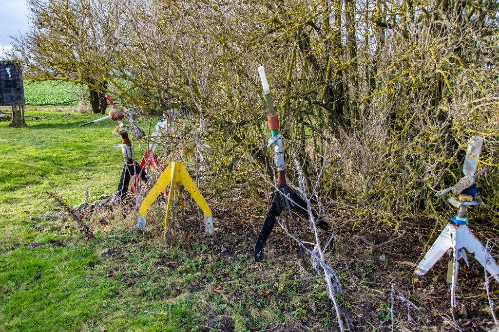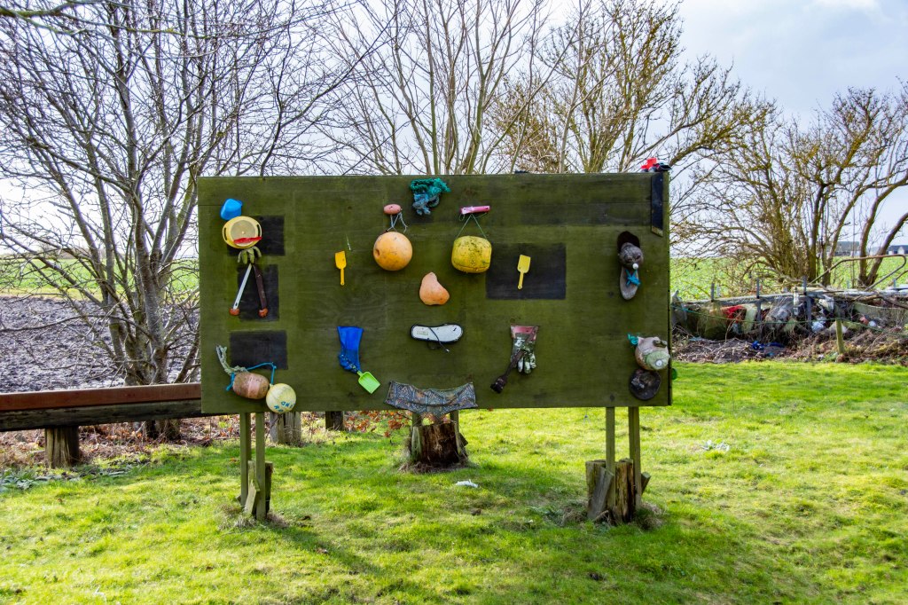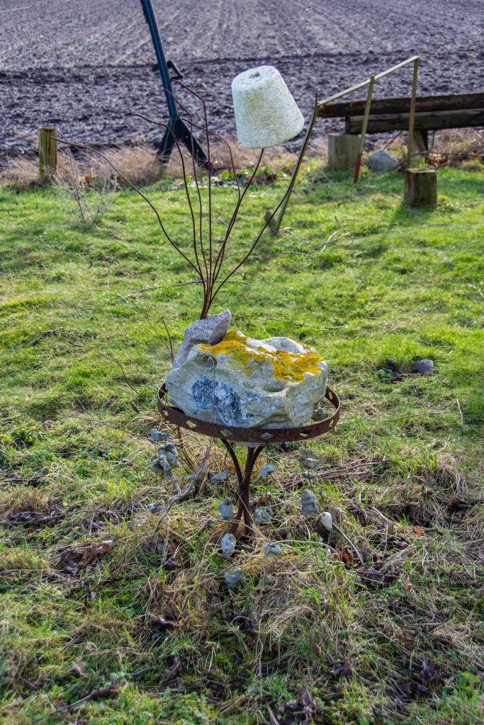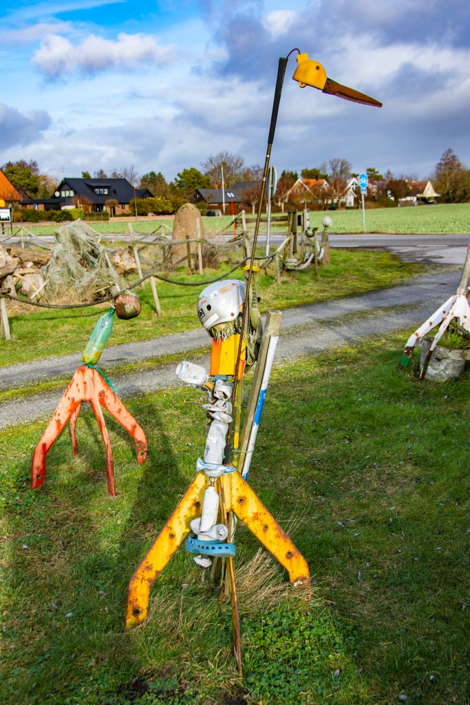 Utanför Kämpinge finns en tomt där någon har gjort en massa konstverk av saker man har hittat på stranden. På skylten stod det strandkonst så jag tyckte att det passade bra in här.