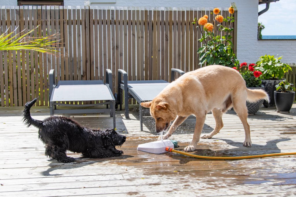 Det gäller att hinna först att trycka på knappen så att vattnet sprutar. Hittills har Diesel hunnit först varje gång men med lite mer träning så kanske Walle har en chans snart.