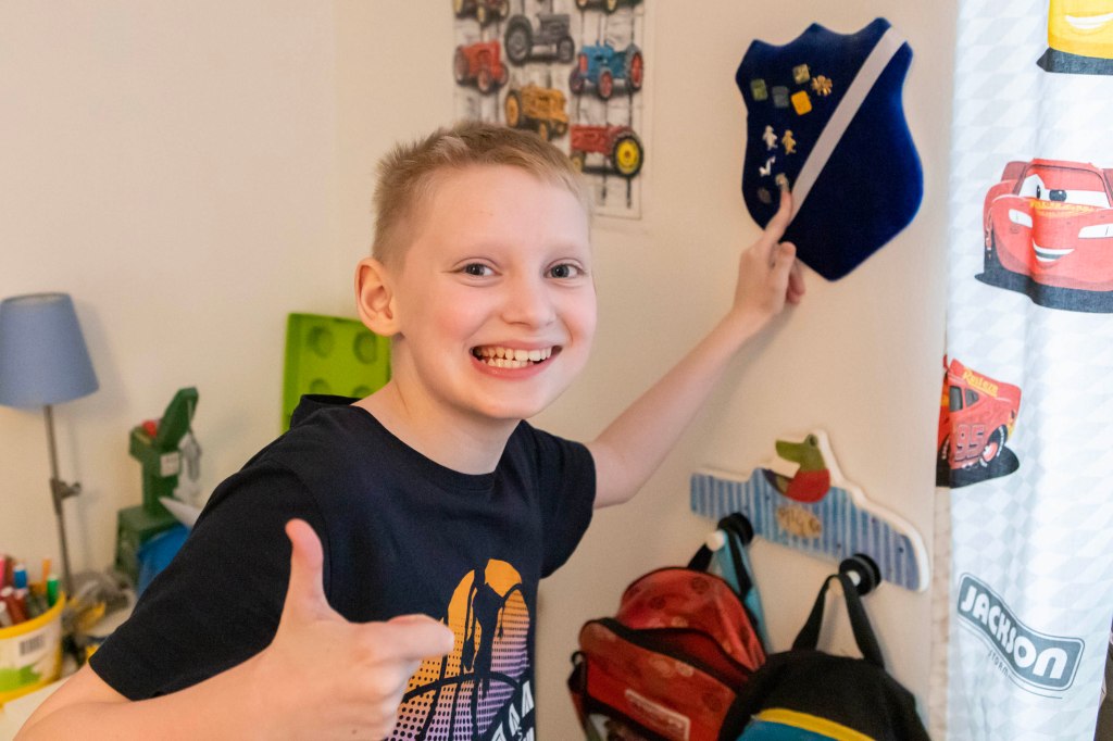 Tummen upp när man tagit ännu ett simmärke. Han var såå stolt ❤