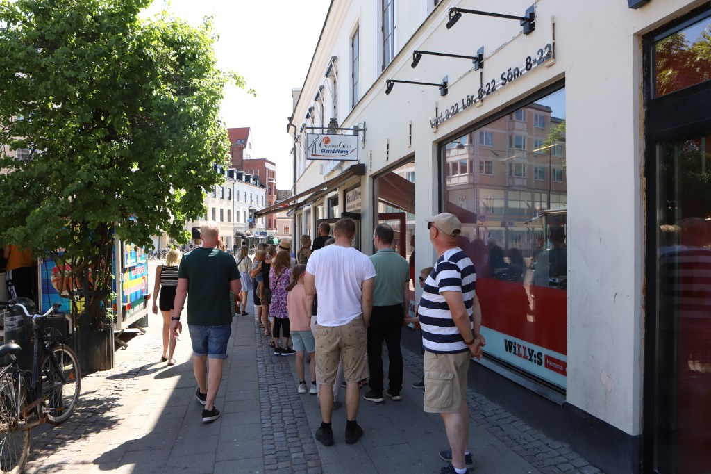 Lång kö för att köpa glass på GlassKulturen i Lund