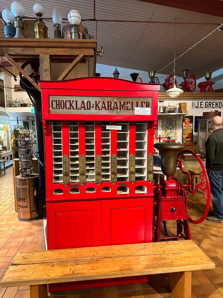 Den här godisautomaten har varit med i filmen Picassos äventyr med Hasse och Tage. Stavfelen är gjorda med vilje står det på skylten.