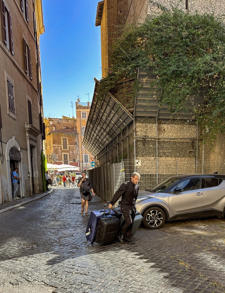 Jag tänkte stackars man när jag såg det här. Där går han och kämpar med 4 väskor och efter kommer kvinnan som tydligen äger väskorna och äter på en glass 🙂