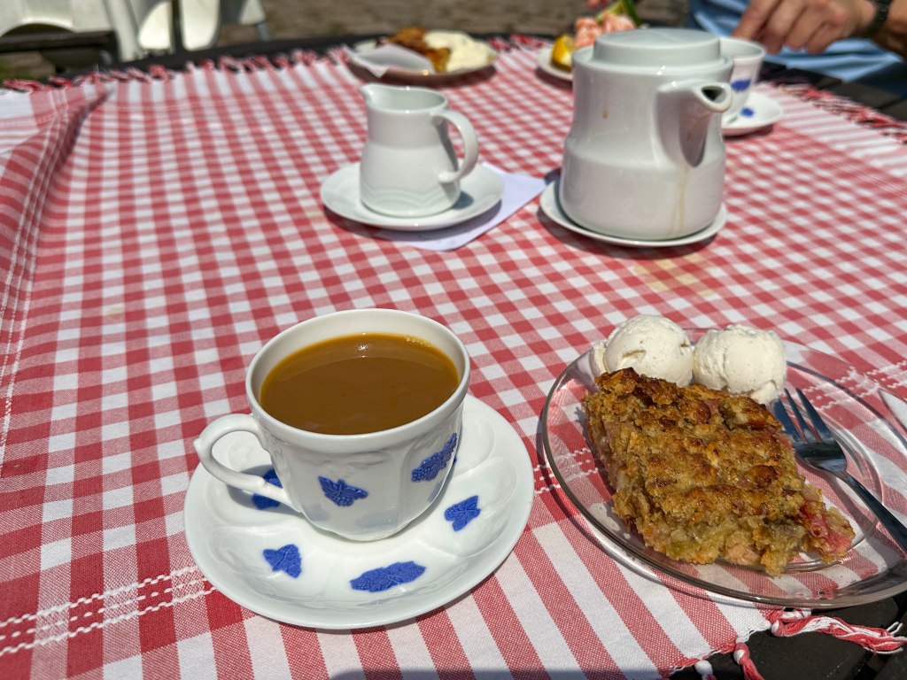 Rabarberpaj hos Alunbrukets café. Såå gott.