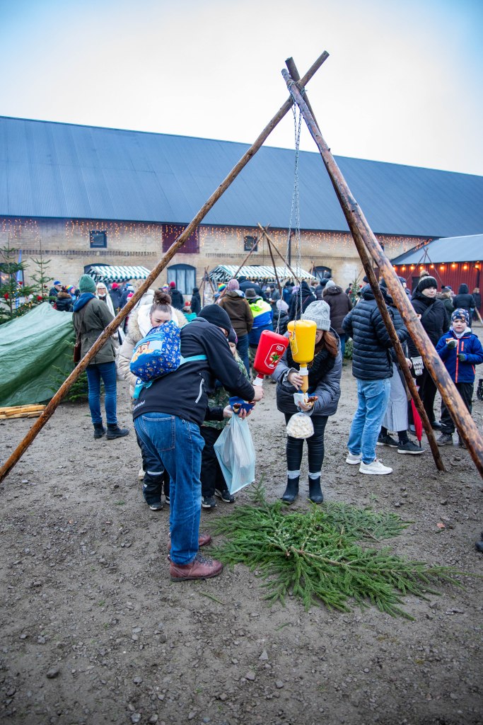 Vi var på Övedsklosters julmarknad dagen efter att dom hade öppnat. Här var många som ville köpa grillad korv och värma sig runt elden.