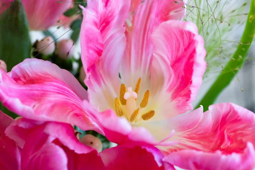 Gus sitter skymd bakom blommorna