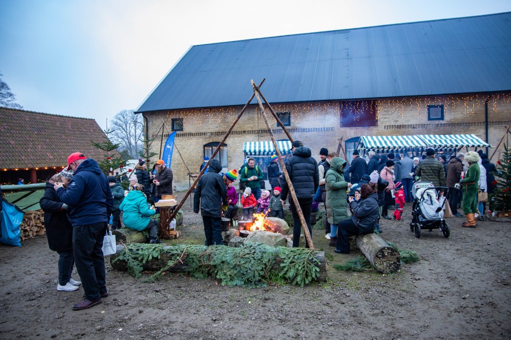 Vi var på Övedsklosters julmarknad dagen efter att dom hade öppnat. Här var många som ville köpa grillad korv och värma sig runt elden.