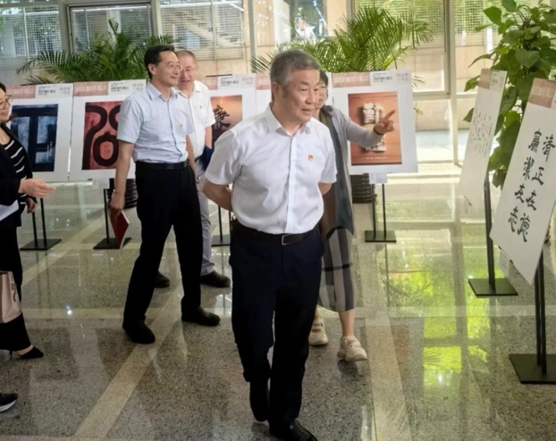 628日下午,赵长禄书记、王云鹏董事长等一行人在新主楼会议中心参观了此次作品展。