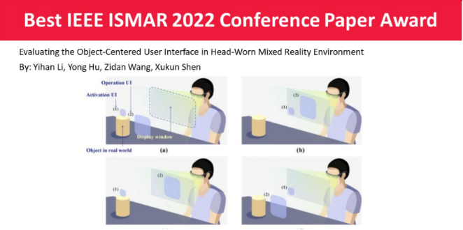 20221017日至21日,混合现实与增强现实领域的顶级国际学术会议IEEE ISMAR 2022The 21st IEEE International Symposium on Mixed and Augmented Reality在新加坡线上线下同时举行。bv伟德2020级硕士生李一含第一作者)、王子丹沈旭昆教授与胡勇教授共同指导下完成的论文Evaluating the Object-Centered User Interface in Head-Worn Mixed Reality Environment被选为本届最佳会议论文奖。