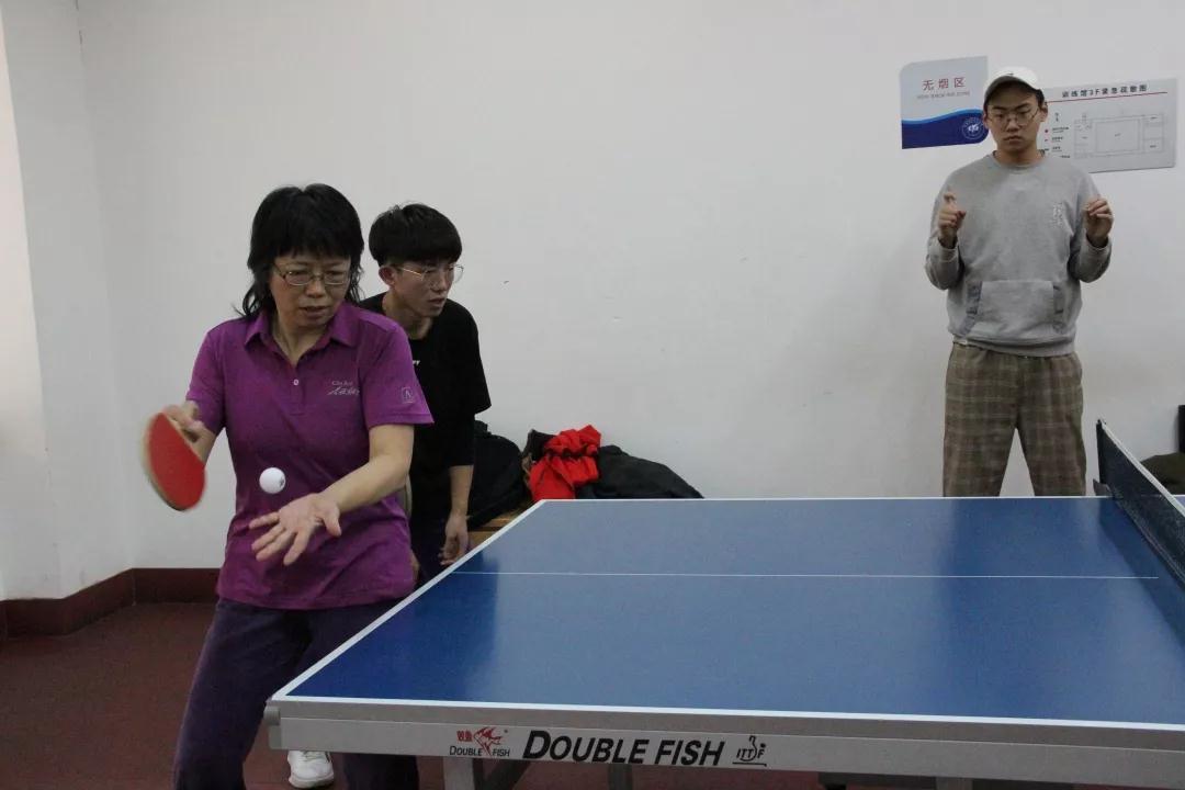 老师和员工们参赛师生积极拼搏、各显身手,现场观战的老师同学也情绪高涨。矫健的身姿,跳动的国球,挥动的球拍,像一幅律动的画。一个个专注的身影灵活移动,一声声有力的呐喊振奋人心!经过激烈的角逐,罗采老师和何玉振同学组取得双打冠军,王群书记和邱成玉同学组取得亚军。