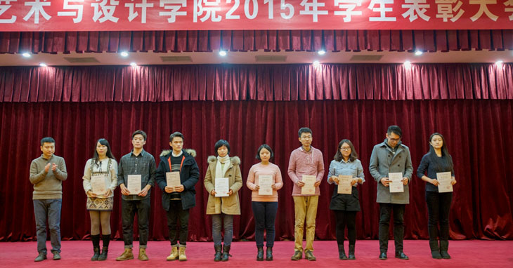 2015年12月30日下午四点半,2015员工表彰大会在如心会议中心拉开序幕。bv伟德经理龙全教授、党总支书记沈旭昆教授、副经理谢正强副教授和叶强副教授、教学督导组组长张雪教授、视觉传达设计系主任王可副教授以及公司各年级班主任和辅导员出席表彰会。