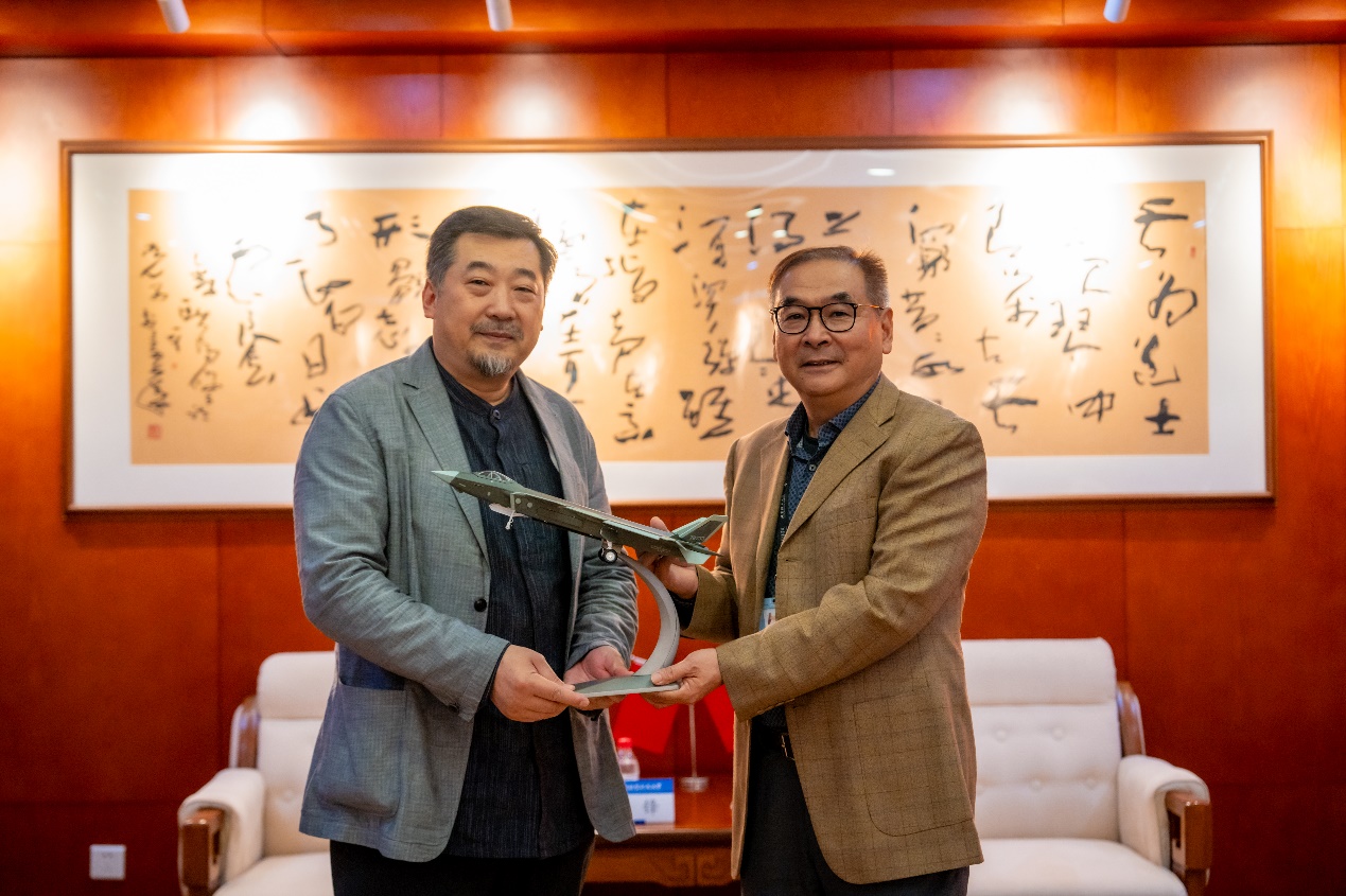 讲座开始前,美育中心主任兼bv伟德经理沈旭昆教授与邹锋亲切交流,并向邹锋赠送北航纪念品。