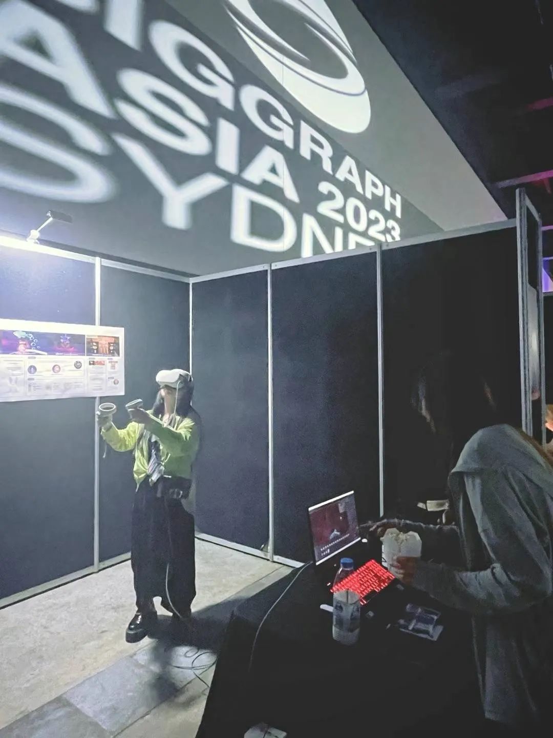 守正创新,用设计讲好中国故事。基于苗族古歌非遗传播困难的现状,独立开发 VR 原型助力活态传播,从对唱互动叙事、身体隐喻交互、知识游戏化三个方面为未来口头类非遗的虚拟交互叙事设计提供一种思路,相关研究成果以第一作者身份在国际顶级会议 SIGGRAPH Asia XR上发表,并在悉尼国际会展中心线下展演。