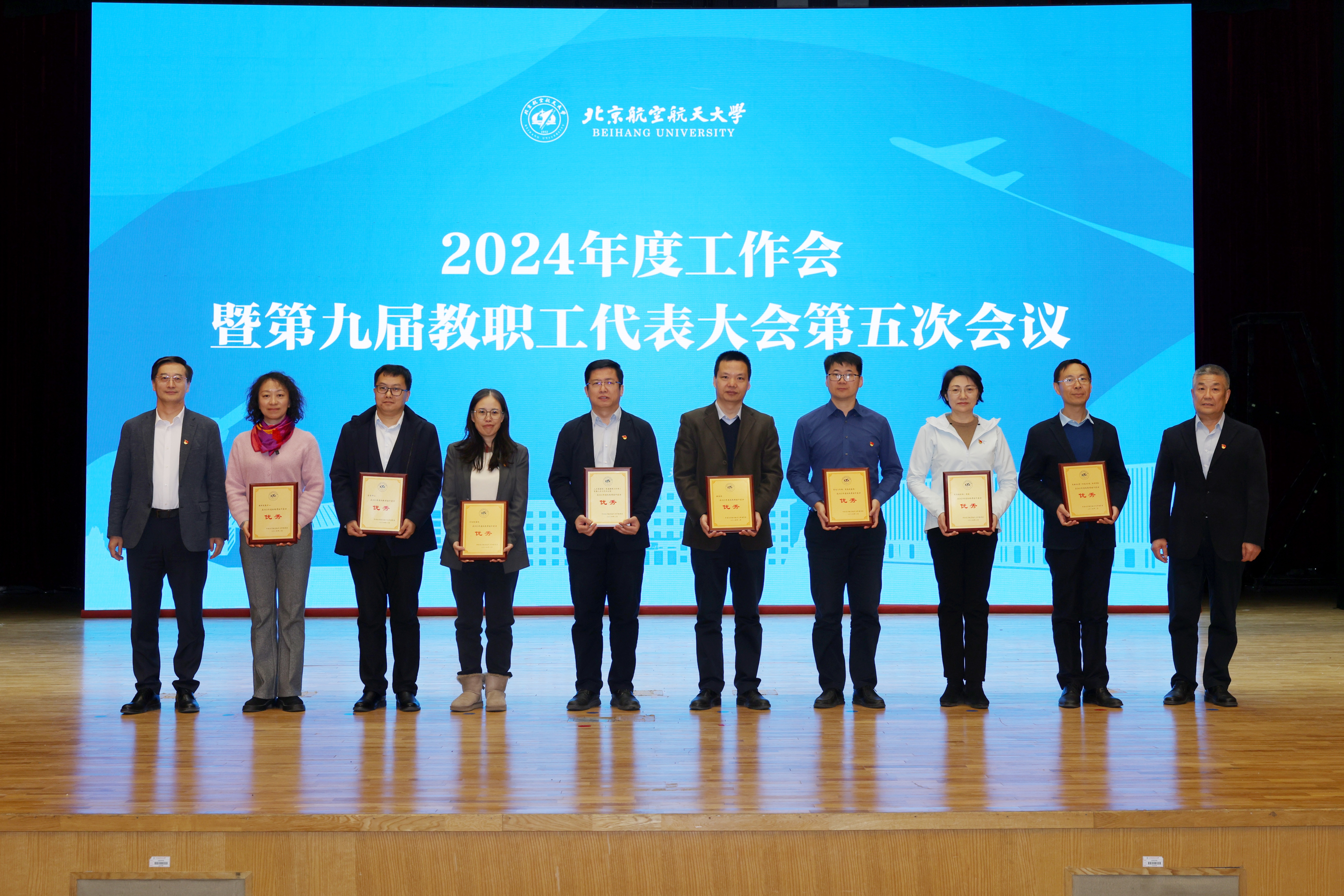 会上表彰了2023年度机构考核优秀单位,材料科学与工程公司、自动化科学与电气工程公司、能源与动力工程公司、航空科学与工程公司、计算机公司、宇航公司、沈元公司、马克思主义公司、航空发动机研究院、集成电路科学与工程公司、党政办公室、党委组织部、员工工作部、教务部、人力资源部、计划财务部、员工中心、教师发展中心获2023年度机构考核优秀单位。党委书记赵长禄、董事长王云鹏为考核优秀单位颁发奖牌。