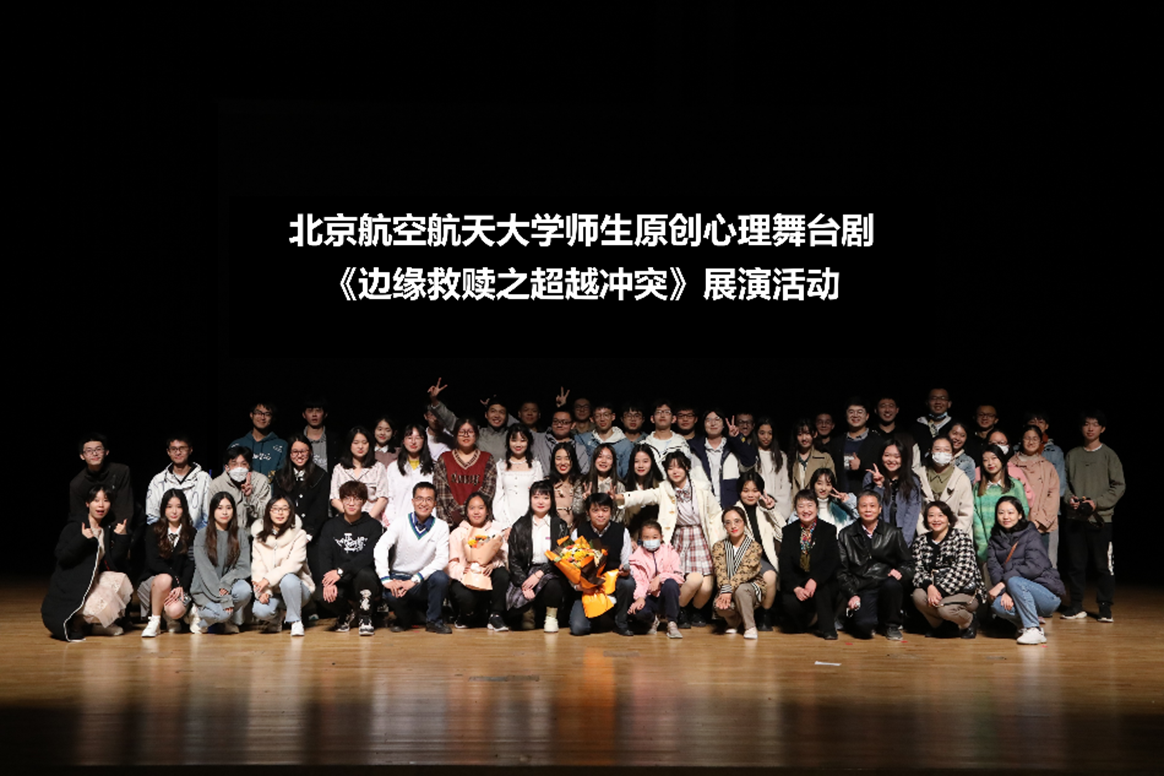 场景四:“我看得很认真,也有很多思考,我相信最起码今晚的观众能更加重视自己心理的各种问题,开始学会与自己和解。”一位员工在观看北航师生自编自导自演的心理剧《边缘救赎之超越冲突》后评论道。