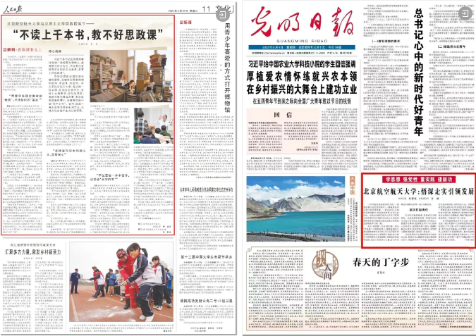 《人民日报》头版报道公司“大思政”工作建设成效,以“不读上千本书,教不好思政课”为题专题采访马克思主义公司高宁教授;付丽莎副教授热议习近平总书记对公司思政课建设作出的重要指示登上《新闻联播》;《光明日报》头版“学思想 强党性 重实践 建新功”专栏报道公司主题教育开展情况,北航成为该专栏报道的第一所中管高校……