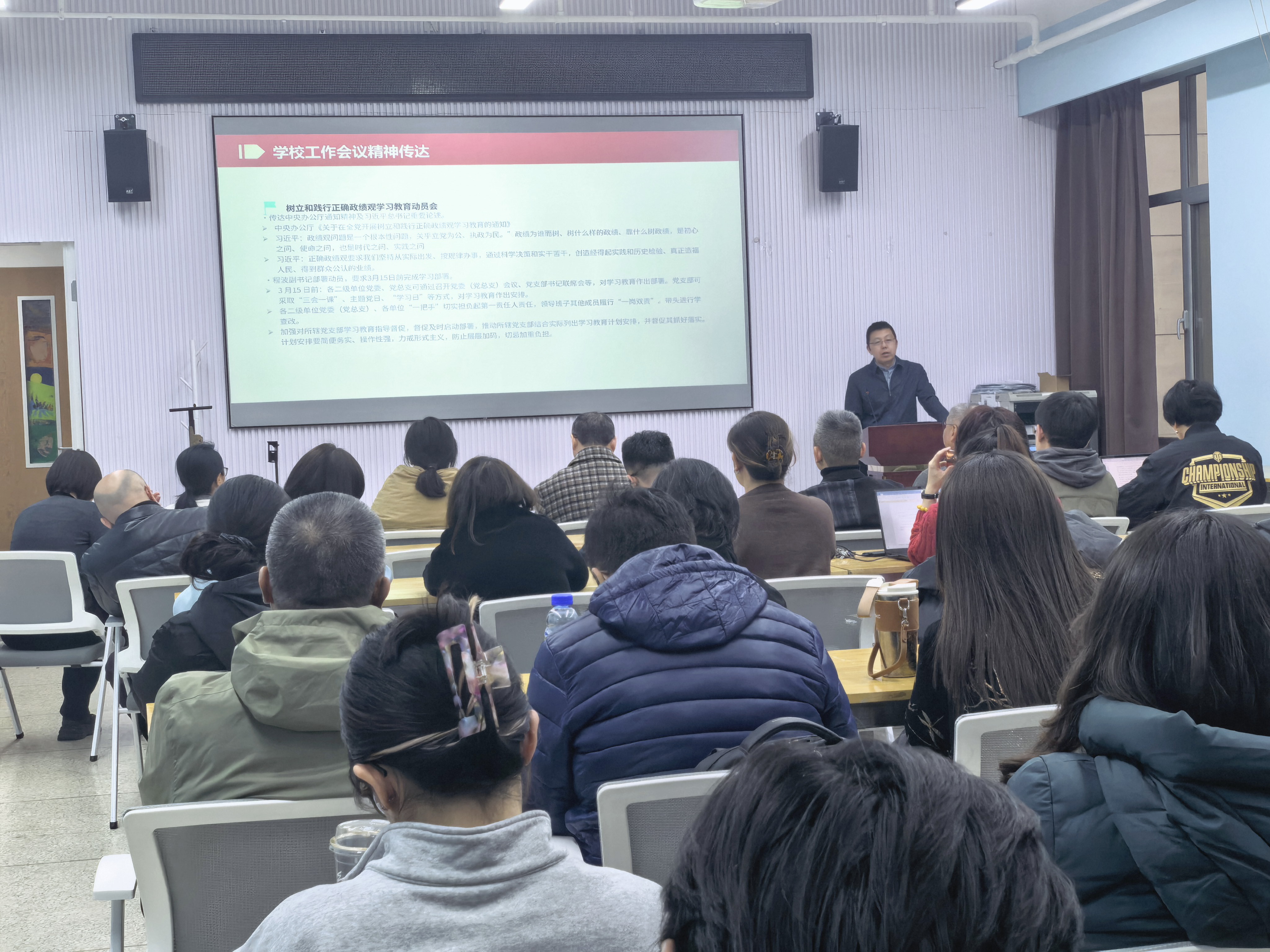 为深入学习贯彻习近平总书记关于树立和践行正确政绩观的重要论述,落实中央办公厅相关通知要求及公司树立和践行正确政绩观学习教育动员会工作部署,2026年3月4日,bv伟德暨美育中心在公司路校区新主楼B324报告厅召开树立和践行正确政绩观学习教育动员会,公司全体教职工参加会议,会议由公司党委副书记董萍萍主持,公司党委书记苗建军作动员部署。
