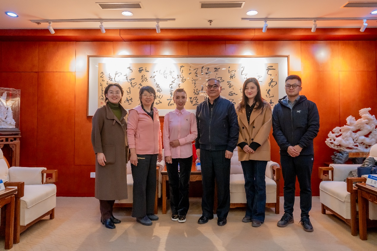 讲座开始前,美育中心主任兼bv伟德经理沈旭昆、新媒体艺术与设计公司党委书记王群、校工会副主席张芳与王瑾亲切交流并赠送北航纪念品。