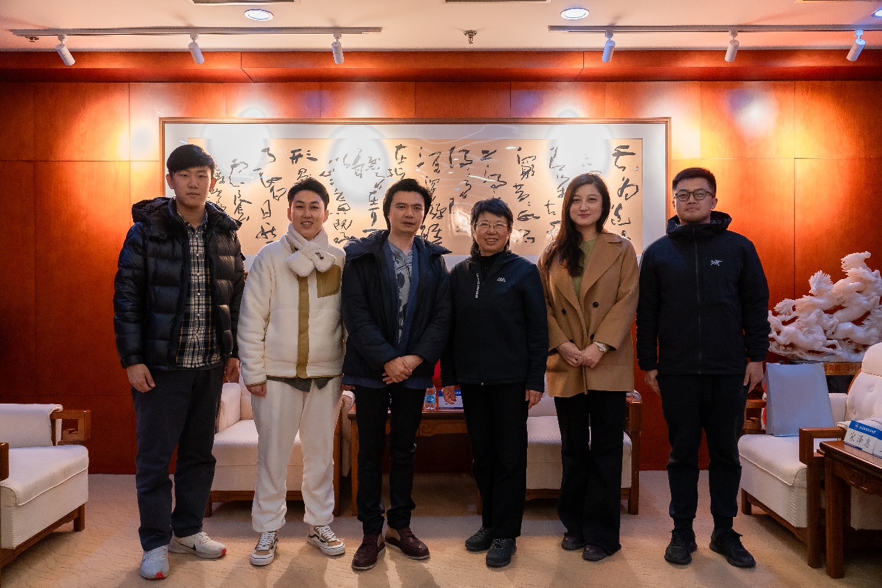 讲座开始前,新媒体艺术与设计公司党委书记王群、美育中心副主任宋泽惠与陈超亲切交流并赠送北航纪念品。