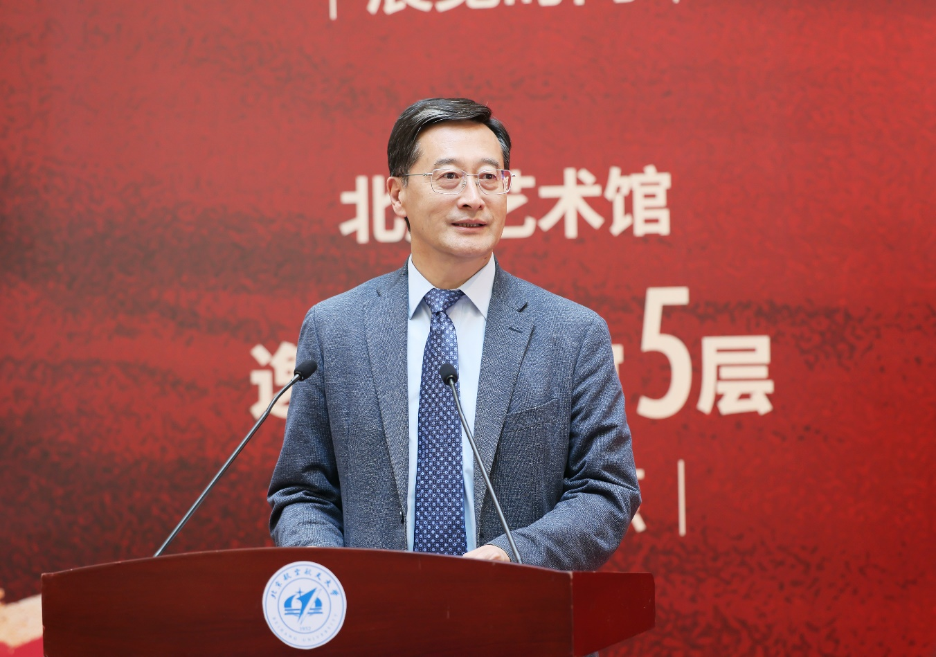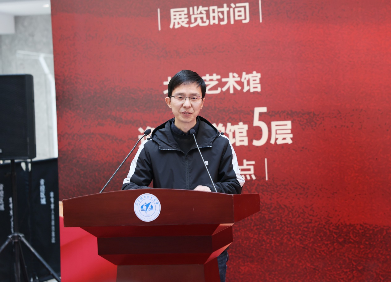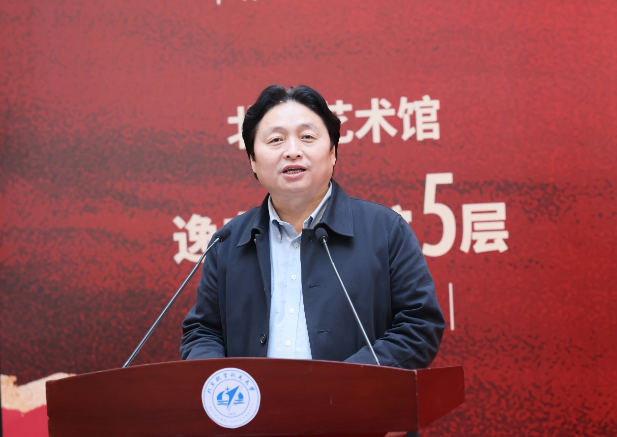 姚友超代表文化和旅游部艺术发展中心向与会嘉宾表示热烈欢迎和衷心感谢,向北航72周年校庆表示热烈祝贺。他表示,本次画展汇聚了当前油画名家的精品力作,不仅是对井冈山自然景观的再现,更是对革命历史记忆的深刻铭记、对中华民族精神家园的深情守望。作为新中国第一所航空航天高等学府,北航始终听党话、跟党走,赓续红色血脉,弘扬以“空天报国”为内核的北航精神,这与坚定信念、艰苦奋斗、实事求是、敢闯新路、依靠群众、勇于胜利的井冈山精神血脉相承。面向未来,艺术发展中心希望继续与北航携手,发挥各自优势,把更多一流的美育资源奉献给广大的学子。他表示,祝愿北航在新的征程上,继续发扬优良传统,勇攀科学高峰,为中华民族的伟大复兴贡献更多的智慧和力量。