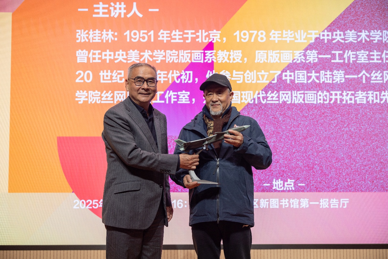 为庆祝北航建校73周年暨沙河校区艺术馆开馆,1022日下午,北航美育中心特邀中国现代丝网版画的开拓者和先行者之一、原中央美术公司版画系教授、版画系第一工作室主任张桂林做客美育大讲堂,为师生带来开馆系列活动的第二场美育主题讲座“中国丝网版画发展与探索”。讲座由北航美育中心副主任宋泽惠主持。