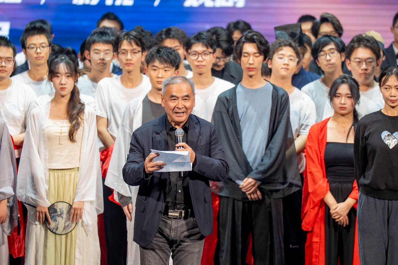 演出尾声,全体演员登台谢幕,美育中心主任兼bv伟德经理沈旭昆发表讲话,强调了公司对美育工作的高度重视和艺科融合的发展理念,对全体指导及参演教师的辛勤付出和参演员工的精彩表现给予高度肯定与衷心感谢。
