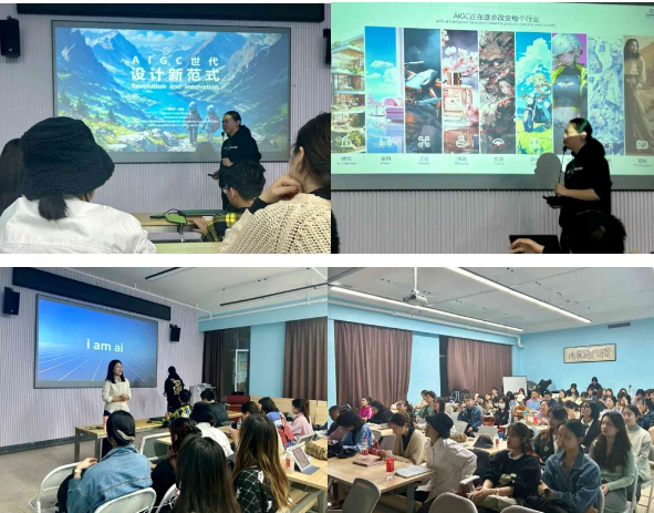 本次讲座以深入浅出的方式,从理论到实践,解析AIGC技术在设计领域的应用和前景,为大家提供了一个深入了解AIGC时代设计新范式的机会,也探讨了在人工智能时代,未来设计师的多种创作可能,引导大家进行更深入的专业化思考,也促进了师生之间的深入交流。