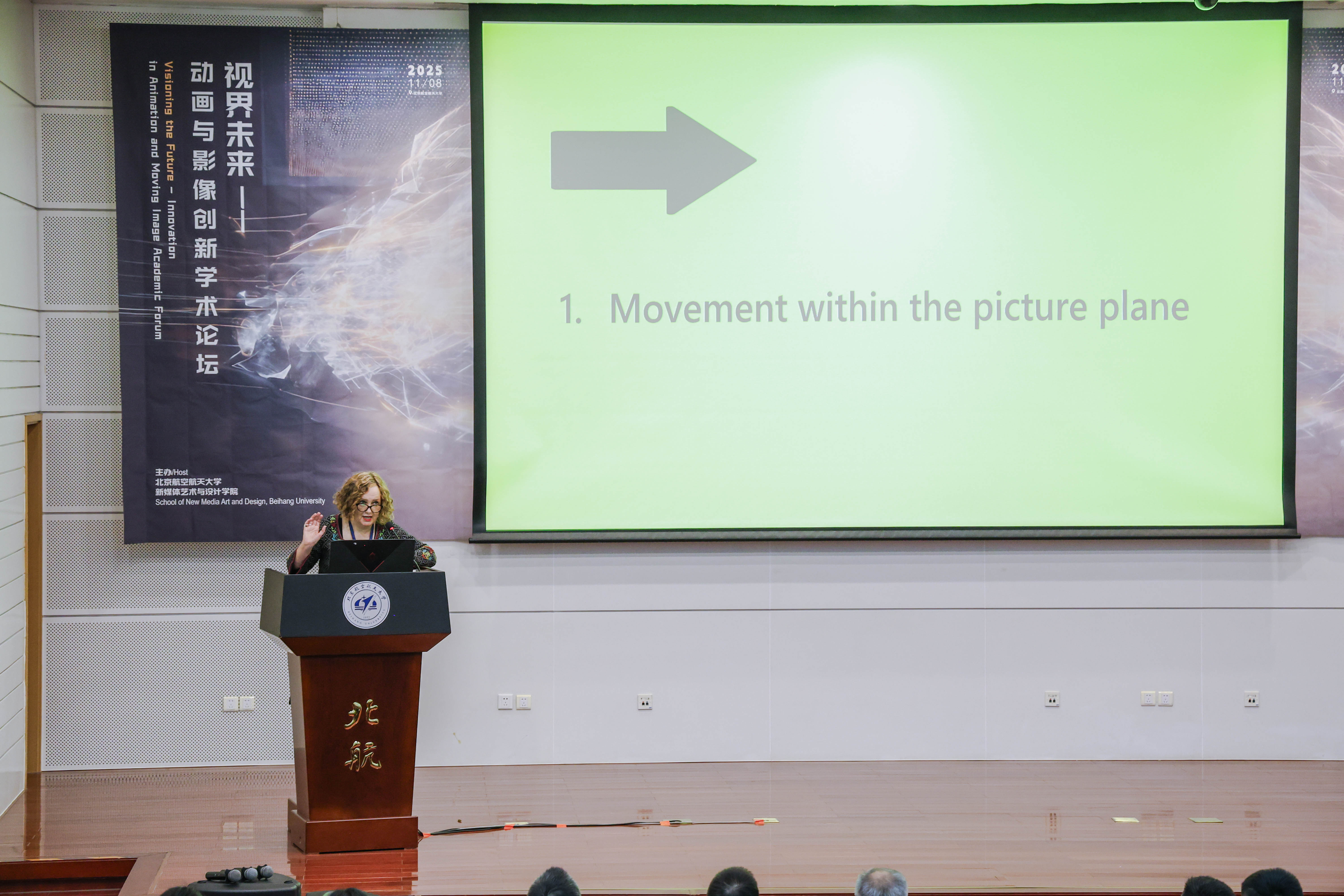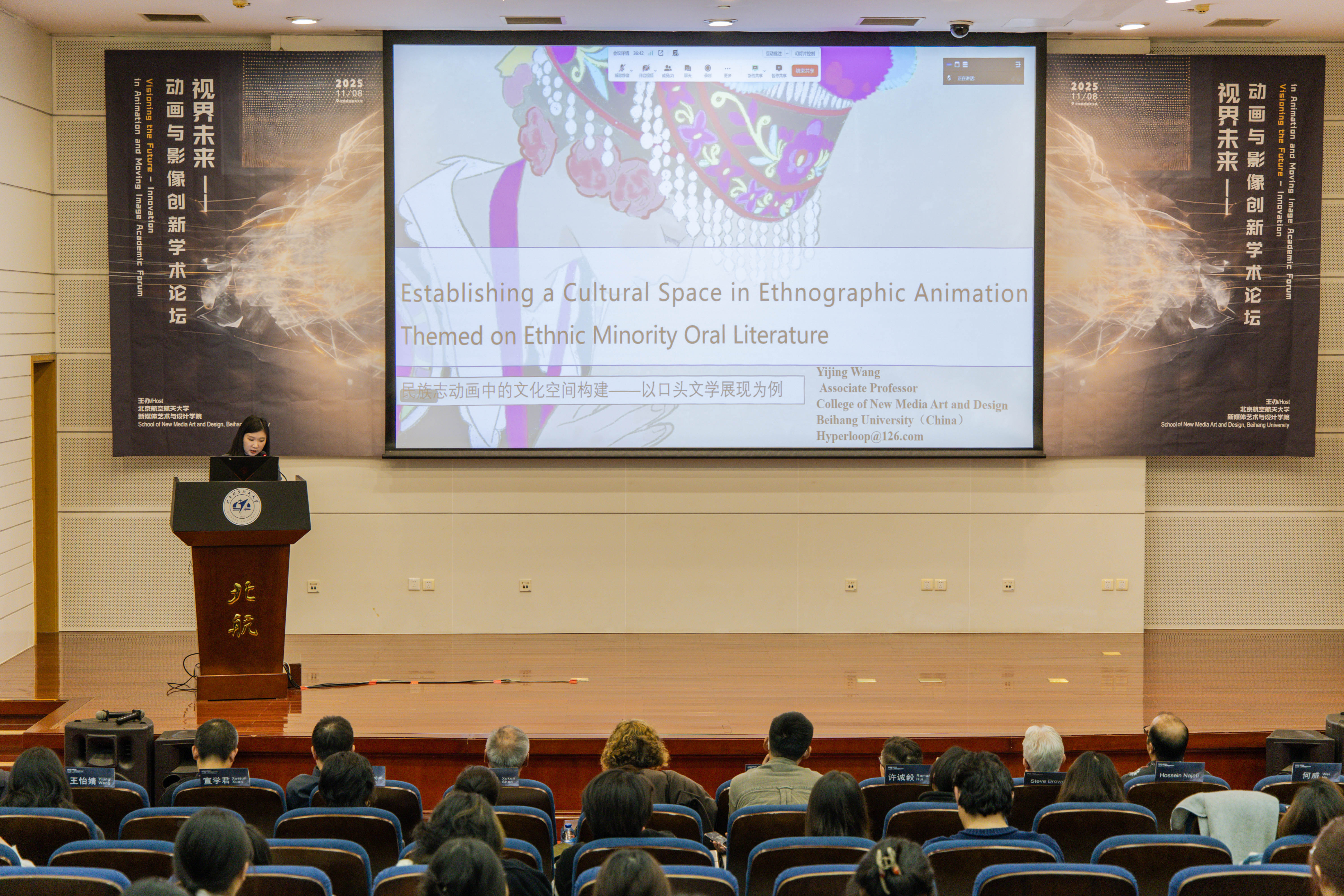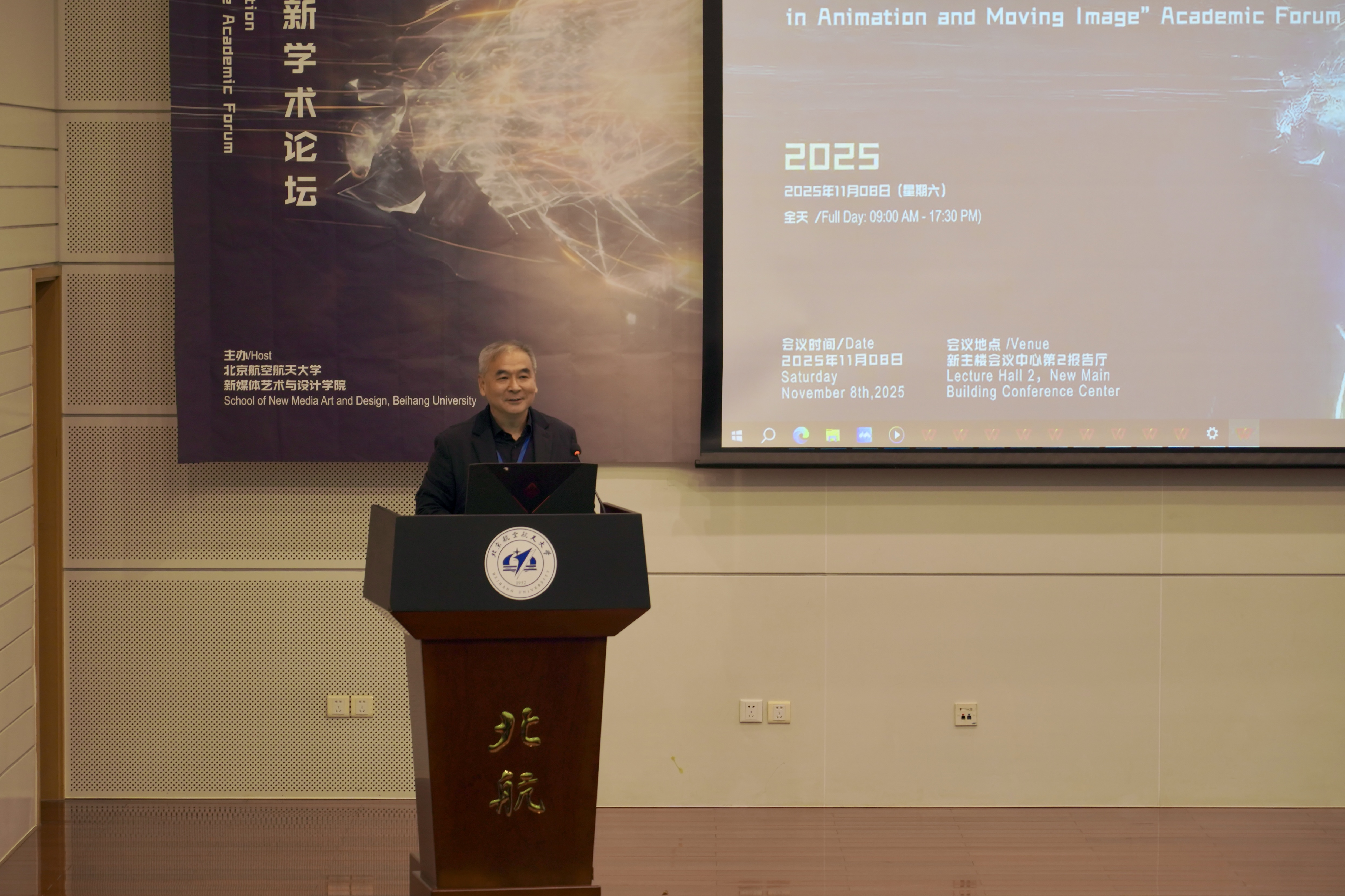 2025年11月8日,由bv伟德主办的“视界未来——动画与影像创新”学术论坛在北航新主楼第二报告厅成功举办。本次论坛亦是北京市科协“科技馆之城”示范项目“苍穹艺境・寰宇创想 —— 多学科融合的航空航天科技艺术科普示范工程”的重要落地组成部分,为项目“科技+艺术+传播”的科普体系实践提供了学术交流场景。论坛邀请了来自英国创意艺术大学、美国加州艺术公司、香港理工大学、中国传媒大学、中国美术公司、北京师范大学等高校的专家学者,与北航师生共同探讨新时代下的动画创新边界与未来趋势。