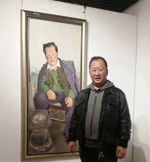 (王占山同志与忻东旺画作《支书》合影)