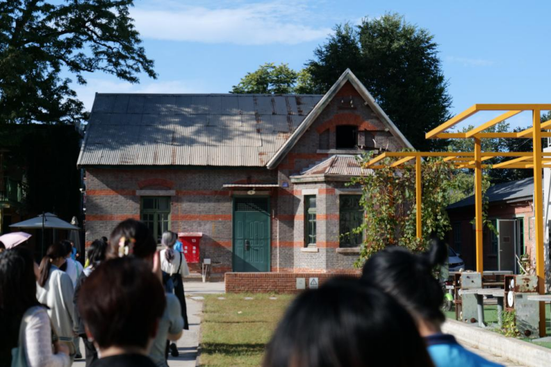 本科生联合党支部成员在光明里社区党委张书记和1897科创城王老师的带领下进行学习,参观该厂的铁路修建历史与红色革命历史,深刻学习领悟二七厂革命先辈坚定不移百折不挠的共产主义信念,学习敢闯敢干,敢于牺牲的大无畏革命精神,学习团结一致,奋力开创新局面的拼搏进取。大家在王老师的带领下先后参观了国家级百年建筑——法式建筑风格别墅六栋、比利时建筑风格别墅一栋。这些曾是外国工程师、公派职工的居所,也是平汉铁路艺员养成所。它先后培养了近千名学员,为京汉铁路乃至全国铁路输送了众多高级技术和管理人才,这些建筑旧址是不仅是丰台区长辛店“二七”大罢工旧址之一,同时也展现出二七厂历史久远、文化气息浓厚的氛围。