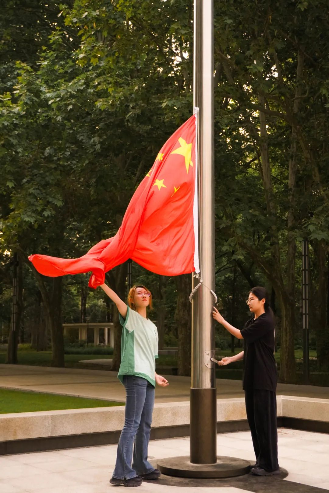 晨光熹微,微风徐徐,5月9日的清晨,新媒体232611班和232612班团支部准时来到老主楼前进行升旗仪式。伴随国歌庄严的旋律,两名升旗手将鲜红的旗帜升起。升旗环节结束后,董烨同学就五四青年节这个契机,向同学们发表国旗下讲话。学习五四精神,对于团员来说不仅是牢记历史责任,也是延续青春的担当与使命。