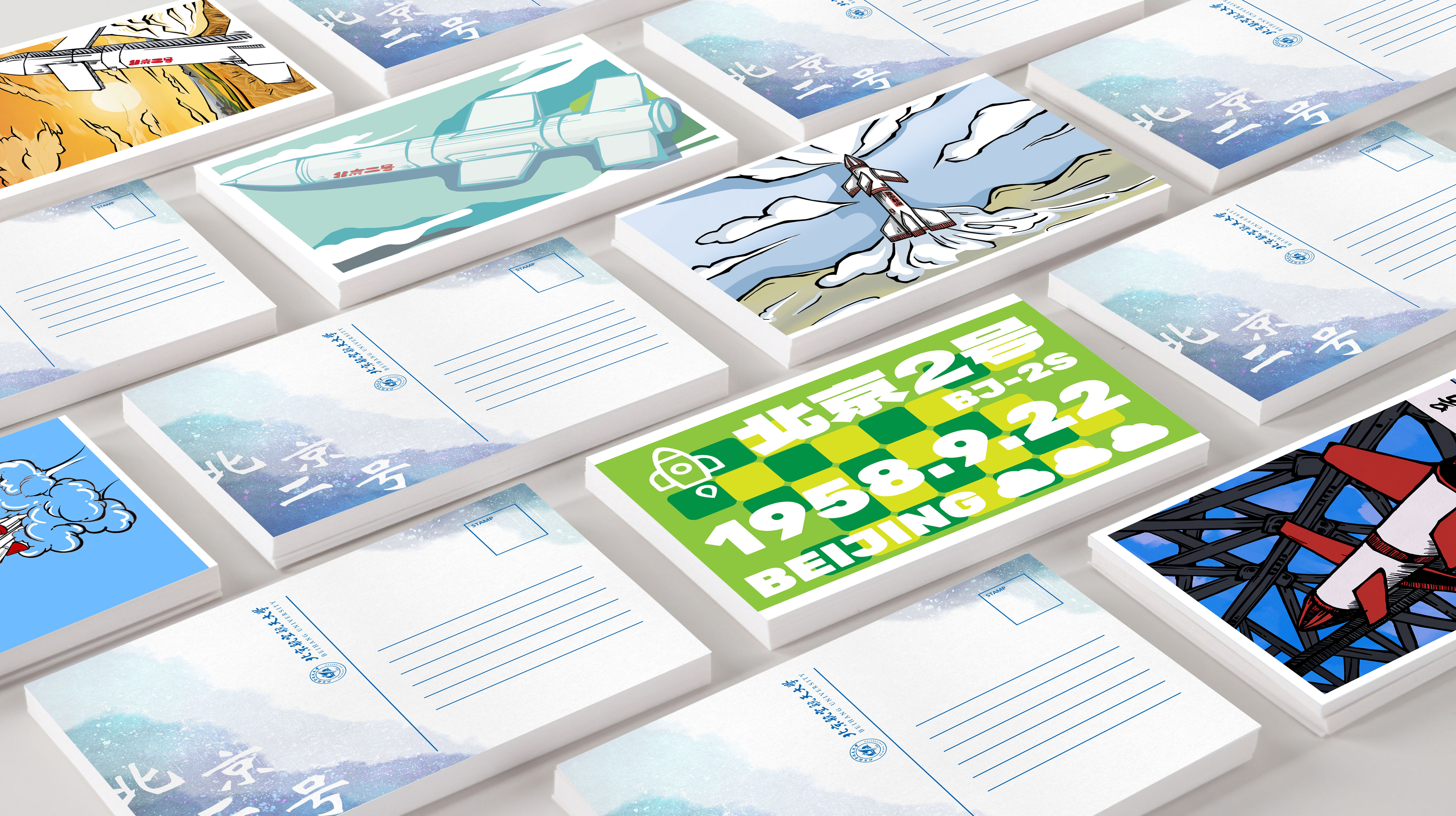 其中,“北京一号”钥匙链以精湛的工艺与厚重的文化为特色,讲述了北京一号飞机的传奇故事;“北京二号”系列冰箱贴则以绘本人物为元素,展现了北航人英勇探索的精神风貌;“北京二号”书签采用独特的异形弧面设计,既实用又富有艺术美感;“北京二号”透卡则为使用者提供了丰富的互动体验,让空天报国的精神融入日常生活;“北京二号”明信片则通过丰富的自然元素与简洁明了的设计风格,展现了“北京二号”探空火箭的壮丽征程;而“北京二号”贴纸则以生动的画面与和谐的色彩搭配,展现了前辈们不懈努力的成果与伟大成就。