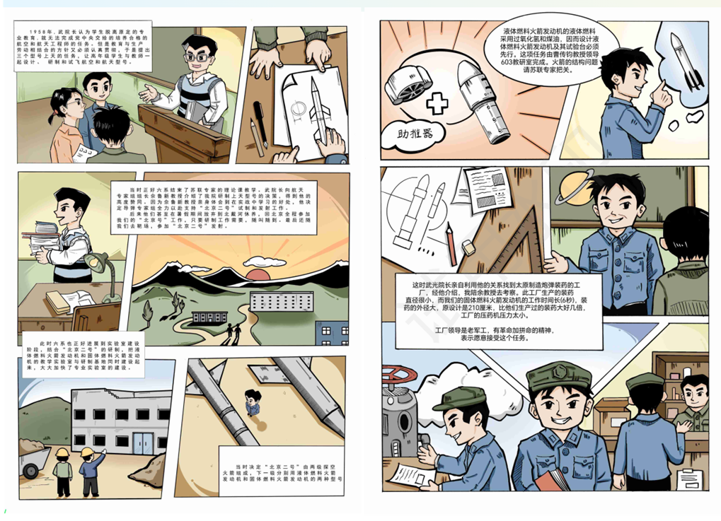 在故事脚本创作阶段,我们以“北京二号”的研制历程为蓝本,深入挖掘并创作了10个兼具教育意义与吸引力的漫画故事脚本。这些故事生动展现了北航人的智慧与汗水,是中国航空航天事业辉煌历程的缩影,它们以文字为载体,承载着北航人的梦想与追求,触动着每一个渴望了解、热爱航空航天的心灵。