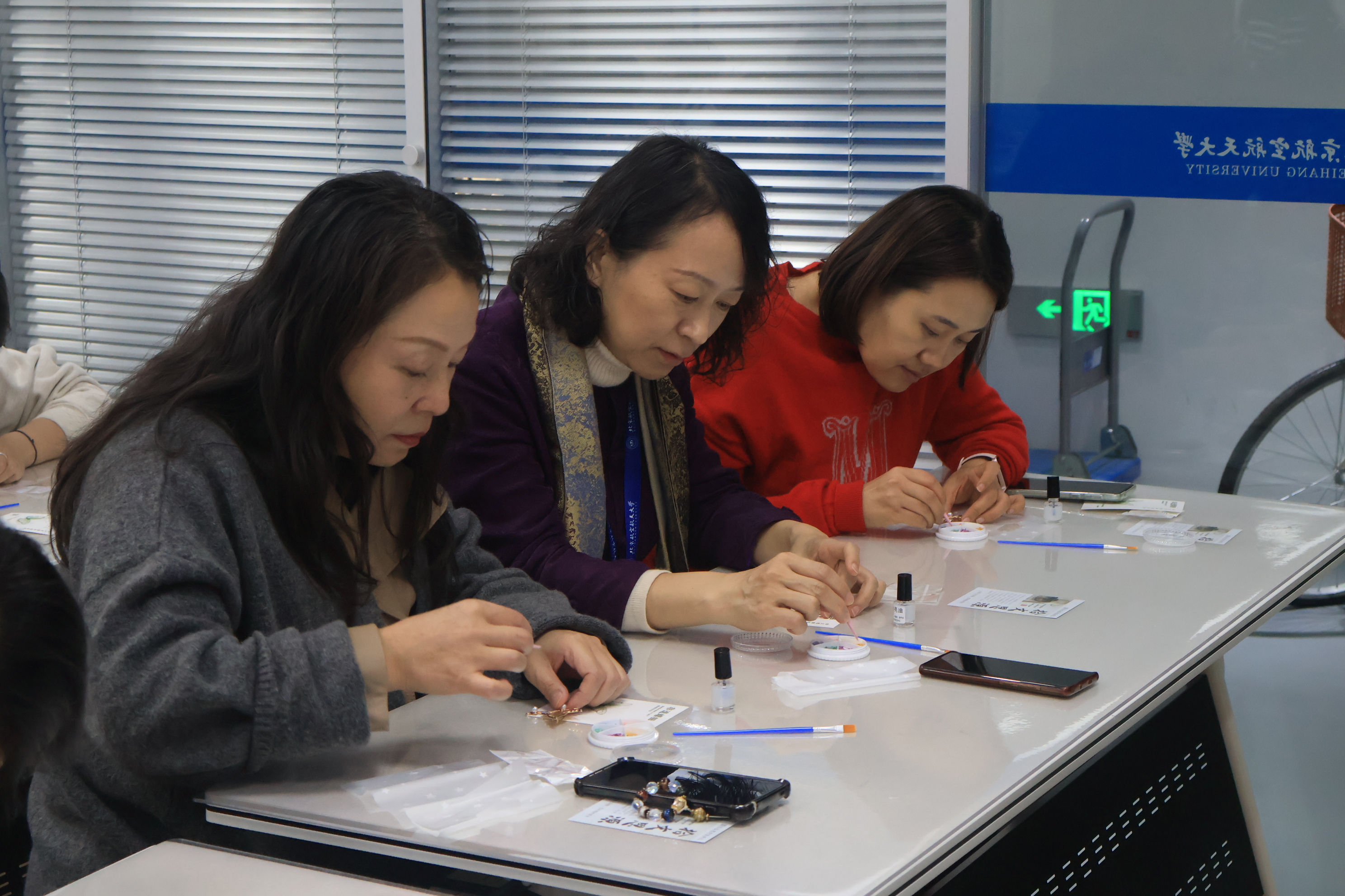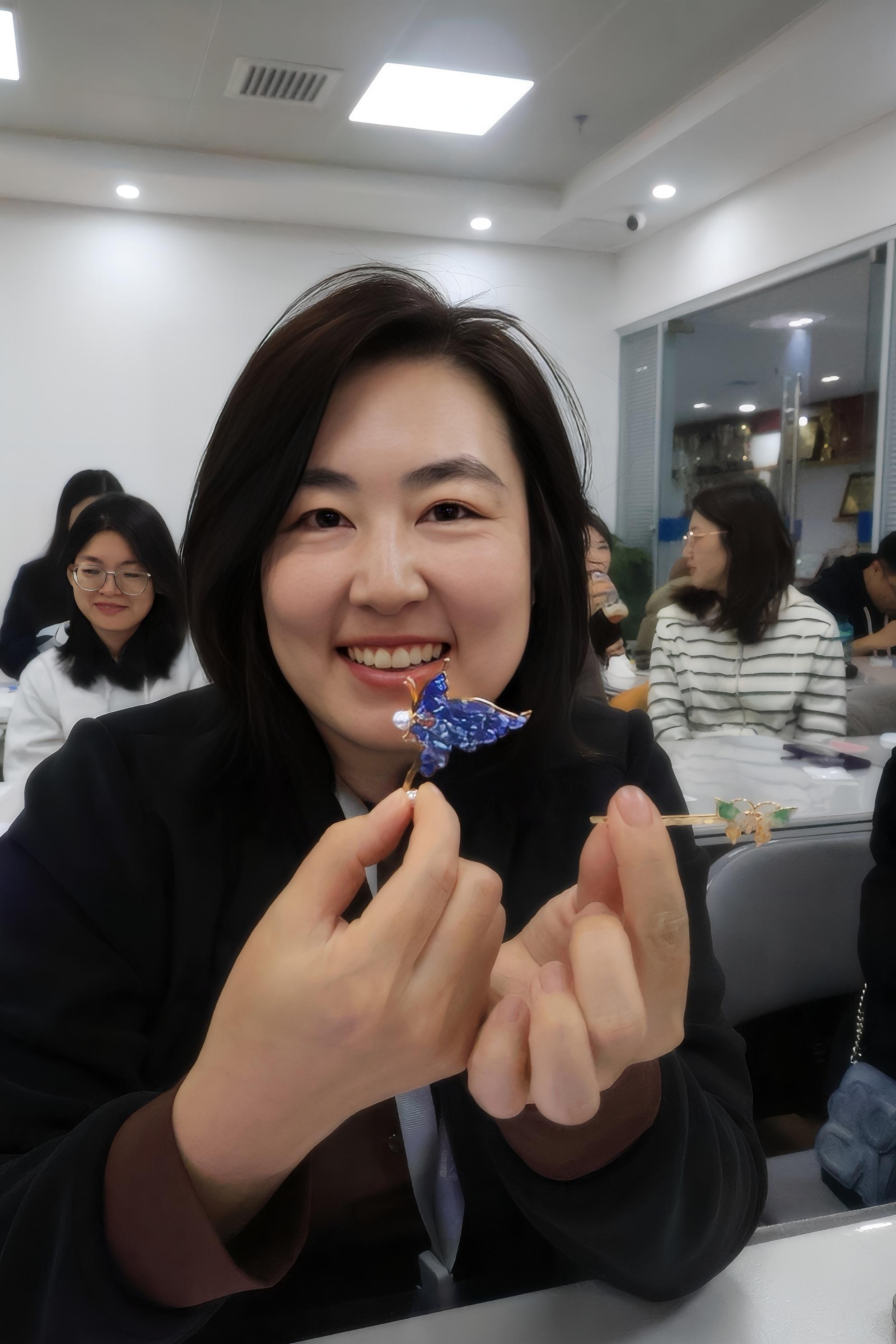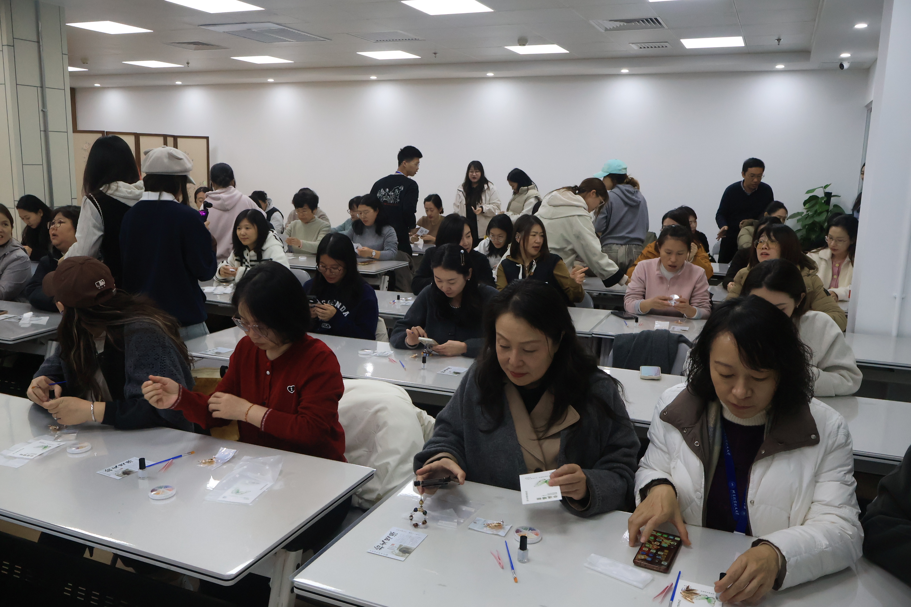 活动现场笑语盈盈,近50名参与者均顺利完成作品,不少老师当场佩戴上自己亲手制作的螺钿胸针,脸上洋溢着满满的成就感。大家纷纷表示,这次体验不仅学会了一项传统手艺,更在慢下来的创作过程中释放了工作压力,深刻体会到“工匠精神”中专注、严谨的内核。来自不同机关部处与公司的教职工们通过活动增进了交流,在共同感受非遗之美的过程中凝聚了情感。