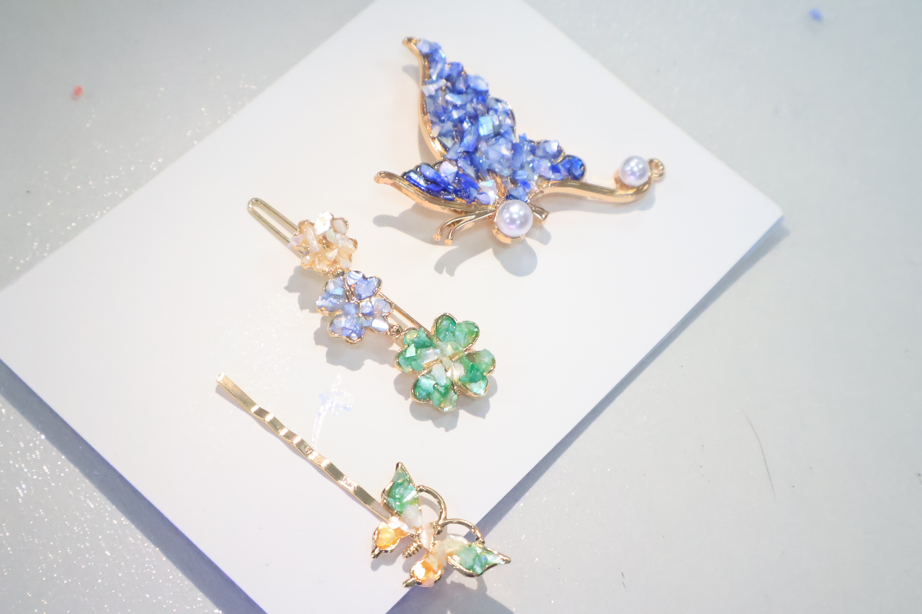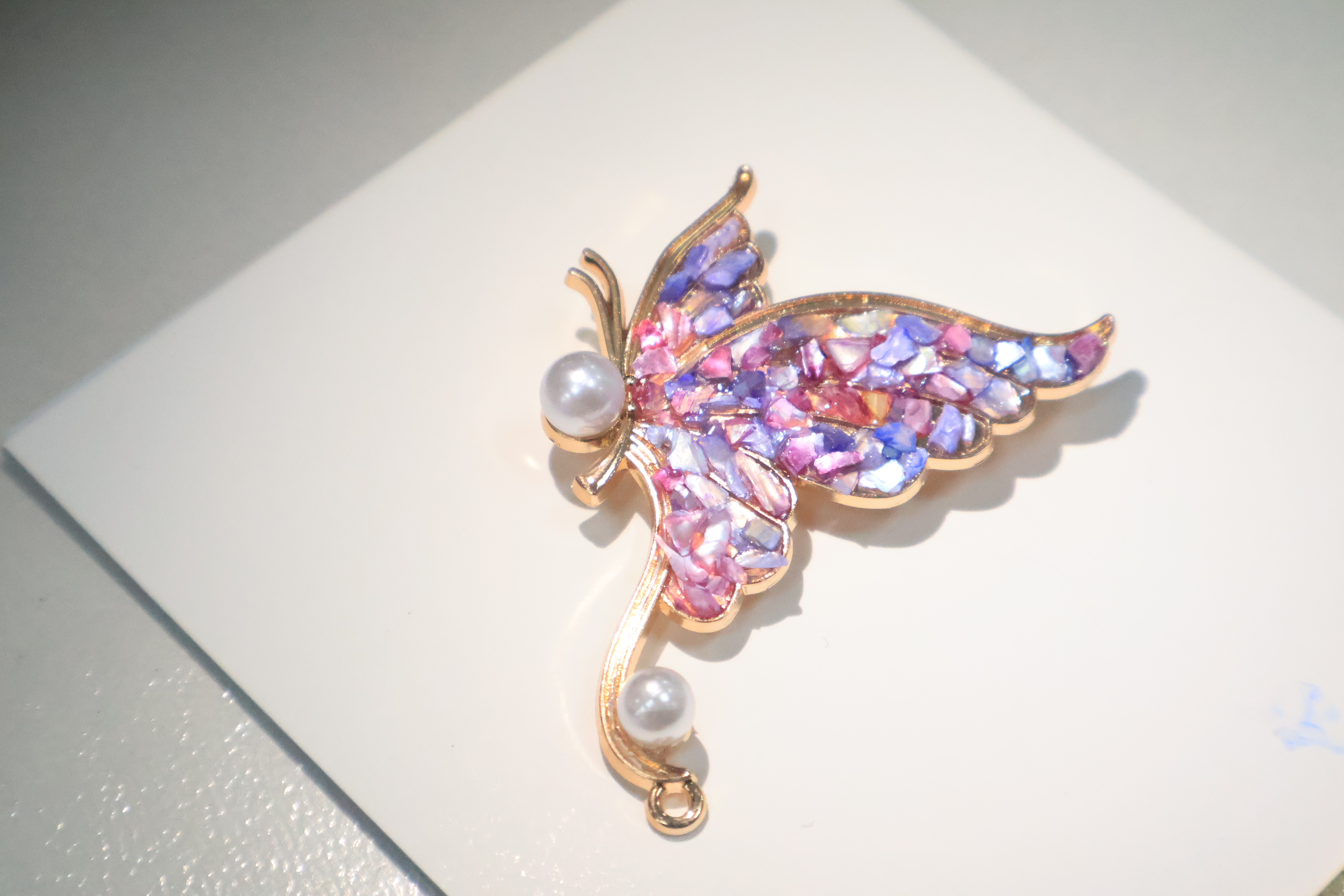 动手实践环节,老师们迅速投入创作。在bv伟德老师与实践队队员的耐心指导与示范下,大家充分发挥创意,构思纹样、细致裁切贝壳片、精准定位粘贴,再经封层胶处理与紫外线灯固化,一步步完成专属螺钿胸针的制作。现场气氛热烈而融洽,工会会员们时而专注钻研,时而交流创作心得,彼此分享搭配技巧与粘贴经验。原本朴素的贝壳片,在一双双巧手下蜕变为独具个性的精美饰品,每一件作品都承载着创作者的巧思与温度。