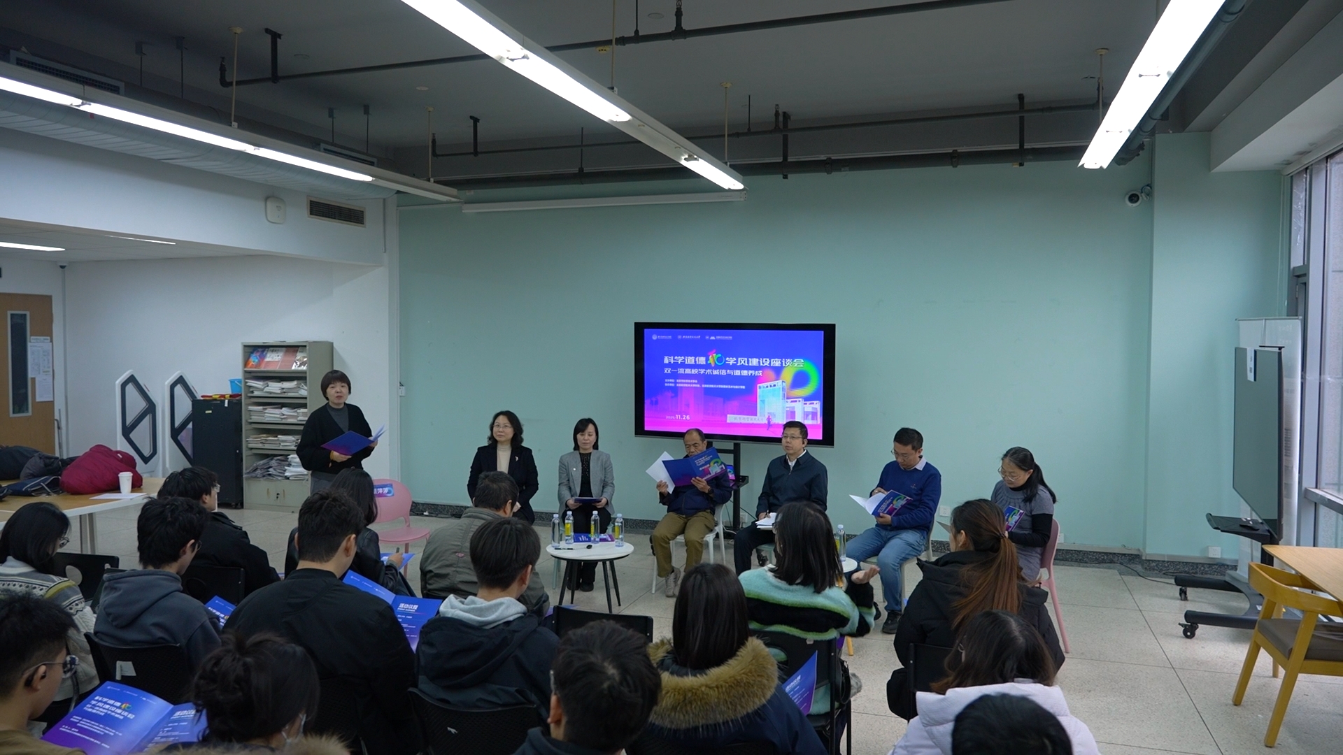 在交流互动环节,多位青年科研工作者结合自身科研经历,就署名规范、AI使用边界、数据审查机制等提出疑问与建议,与会嘉宾一一回应,强调学术诚信的本质是“心中有秤、行为有度”,鼓励同学们在科研中坚持求真务实、久久为功。